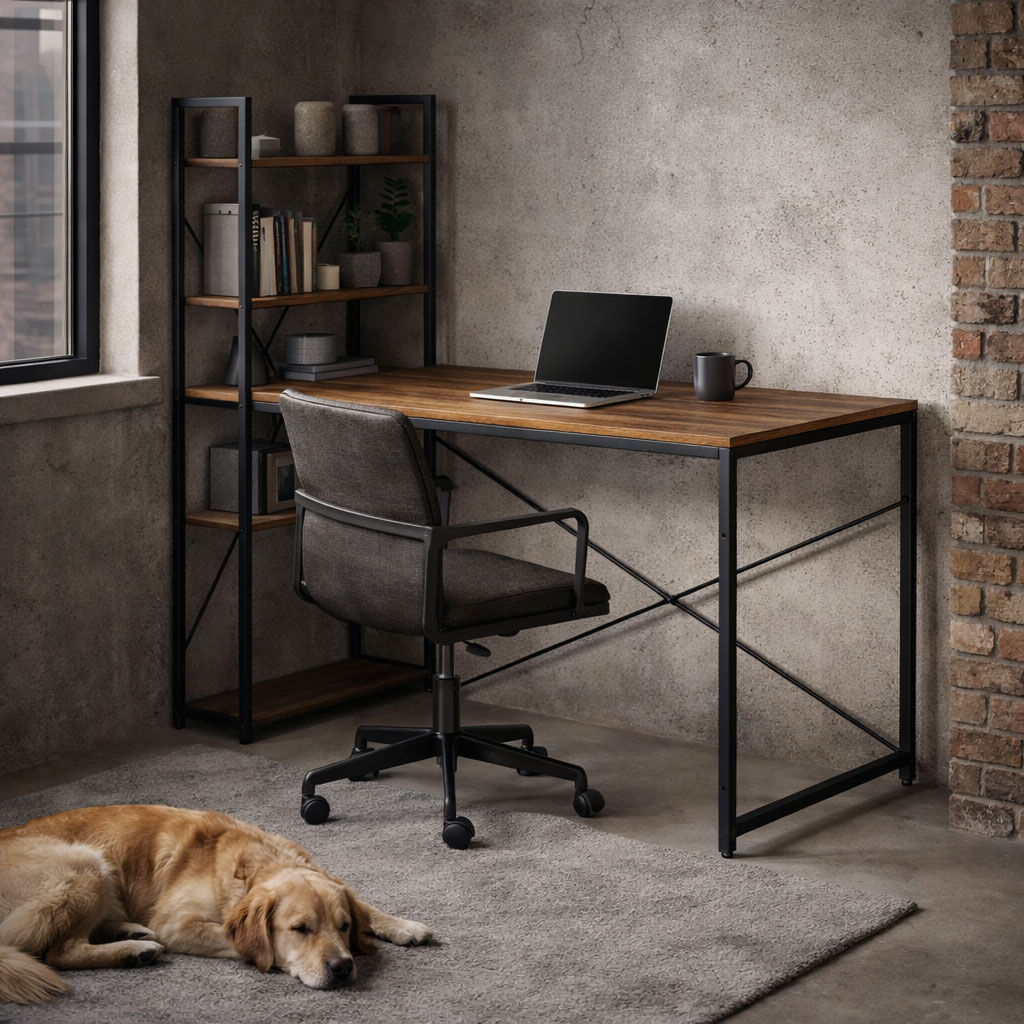 Biurko komputerowe z regałem marki ModernHome to idealne rozwiązanie dla osób, które potrzebują funkcjonalnego i estetycznego miejsca do pracy lub nauki. Sprawdzi się doskonale jako stanowisko do pracy zdalnej, biurko dla ucznia, a także przestrzeń do grania czy rozwijania pasji. Dzięki dodatkowym półkom użytkownik zyskuje miejsce na książki, dokumenty, sprzęt czy dekoracje, co ułatwia organizację i utrzymanie porządku. Mebel można łatwo dopasować do każdego wnętrza – możliwość montażu regału po lewej lub prawej stronie zwiększa elastyczność ustawienia.