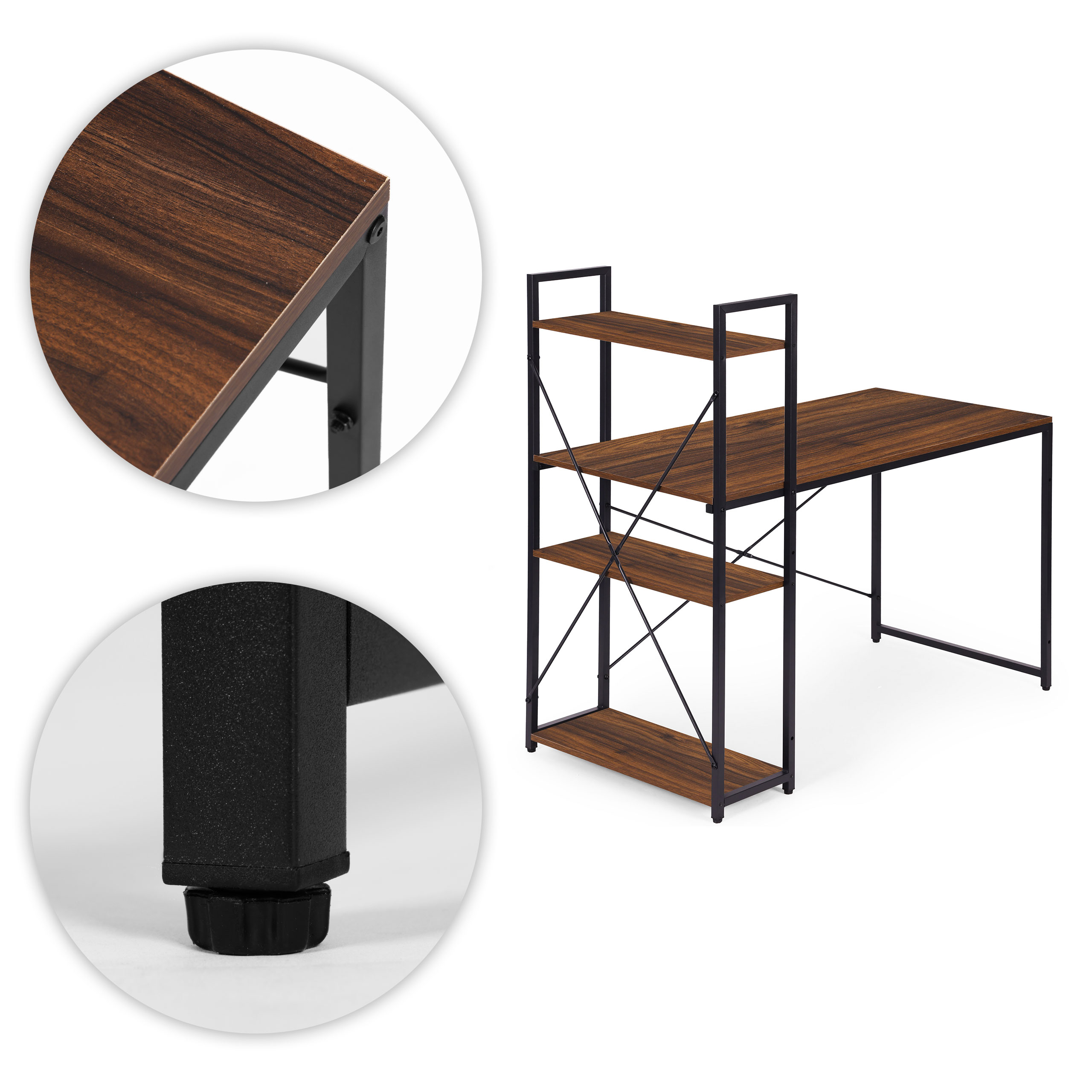 Biurko komputerowe szkolne 120×60 cm regał z 3 półkami ciemny orzech loft ModernHome