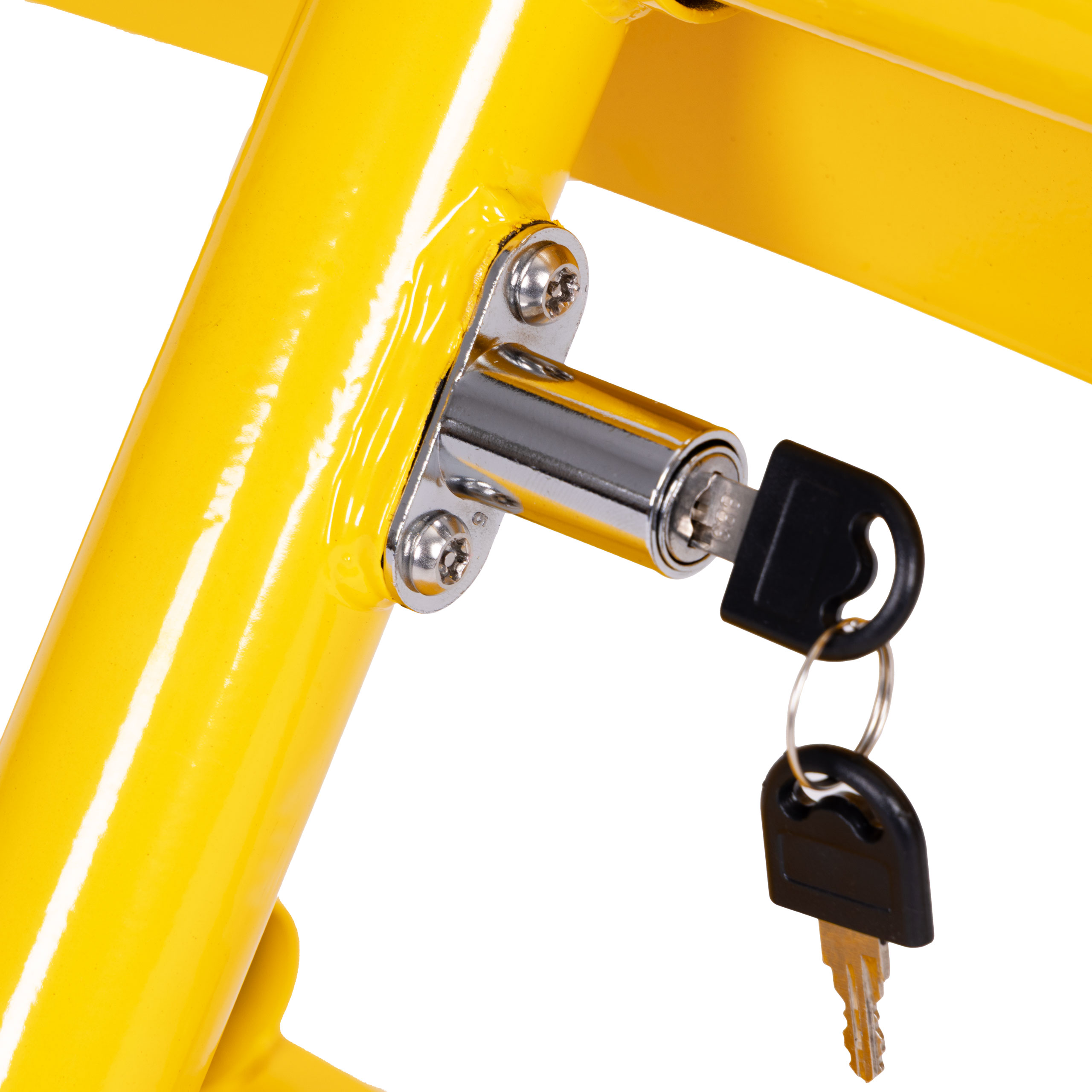Blokada wyposażona jest w solidny zamek, który zapewnia skuteczne zabezpieczenie przed nieautoryzowanym dostępem. Do zestawu dołączono zestaw 2 kluczy, dzięki czemu masz pełną kontrolę nad otwieraniem i zamykaniem słupka.