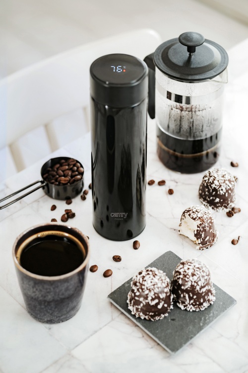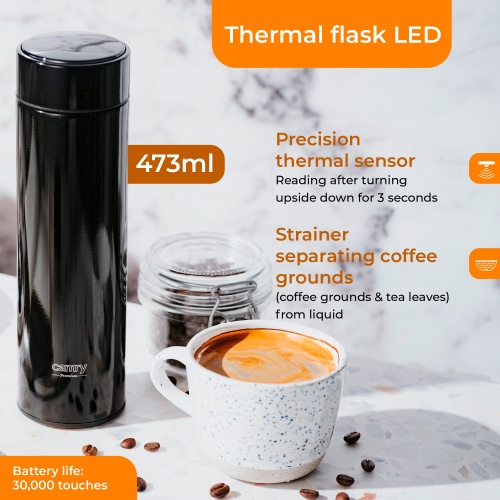 Najniższa cena z ostatnich 30 dni to 38.61 zł z dnia 2026-04-13Termos Camry 4507 z wyświetlaczem dotykowym LED, wskazującym aktualną temperaturę napoju, to świetne rozwiązanie dla miłośników gorących napojów. Dzięki temu można łatwo monitorować temperaturę ulubionego napoju w czasie rzeczywistym. Wyświetlacz LED umożliwia precyzyjne odczytywanie temperatury, co pozwala uniknąć poparzeń lub picia zbyt zimnych napojów. Dodatkowo dotykowy wyświetlacz sprawia, że obsługa termosu jest łatwa i intuicyjna. Urządzenie posiada precyzyjny czujnik termiczny – odczyt temp. po odwróceniu do góry dnem na 3 sekundy. Izolacja próżniowa oraz podwójne ścianki utrzymują temperaturę dla napojów gorących 8 godzin lub zimnych do 12 godzin. W zestawie znajduje się sitko separujące fusy. Wbudowana bateria wyświetlacza LED ma bardzo długą żywotność do 30.000 dotknięć. Pojemność termosu to 473ml. Ten nowoczesny termos to nie tylko praktyczne urządzenie, ale również stylowy dodatek dla osób ceniących sobie wygodę i nowoczesne rozwiązania.