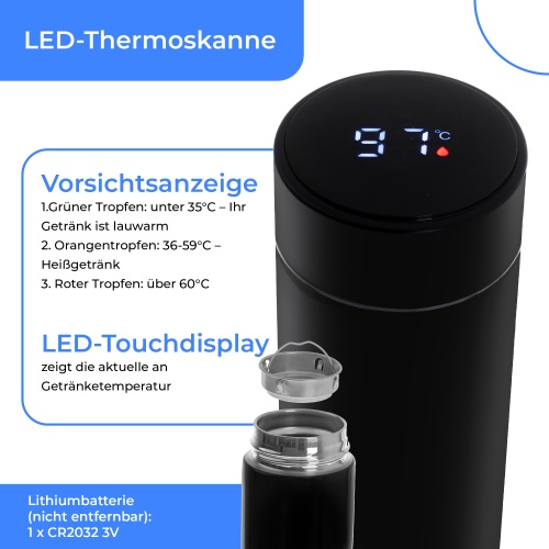 Ten nowoczesny termos z wyświetlaczem LED to idealne rozwiązanie dla osób, które cenią sobie zarówno funkcjonalność, jak i stylowy design. Termos ten został zaprojektowany, aby zapewnić doskonałe trzymanie ciepła i chłodzenia przez dłuższy czas, a jednocześnie umożliwić łatwe odczytywanie temperatury. Główną cechą wyróżniającą ten termos jest wbudowany wyświetlacz LED. Dzięki niemu możesz łatwo sprawdzić aktualną temperaturę zawartości termosu bez konieczności otwierania go. Wyświetlacz LED jest czytelny i jasny, umieszczony na zewnętrznej powierzchni termosu, co sprawia, że odczytywanie temperatury jest wyjątkowo wygodne.