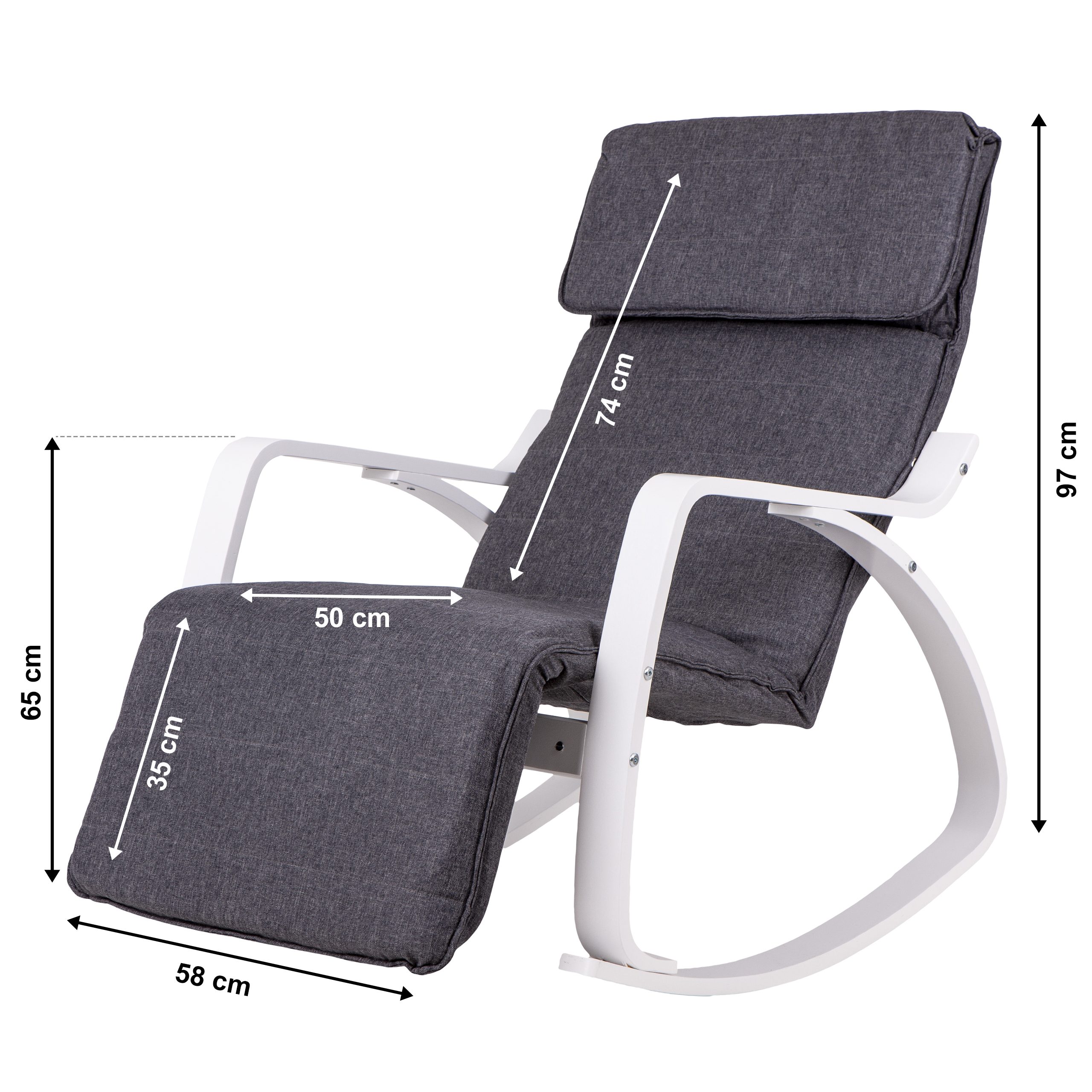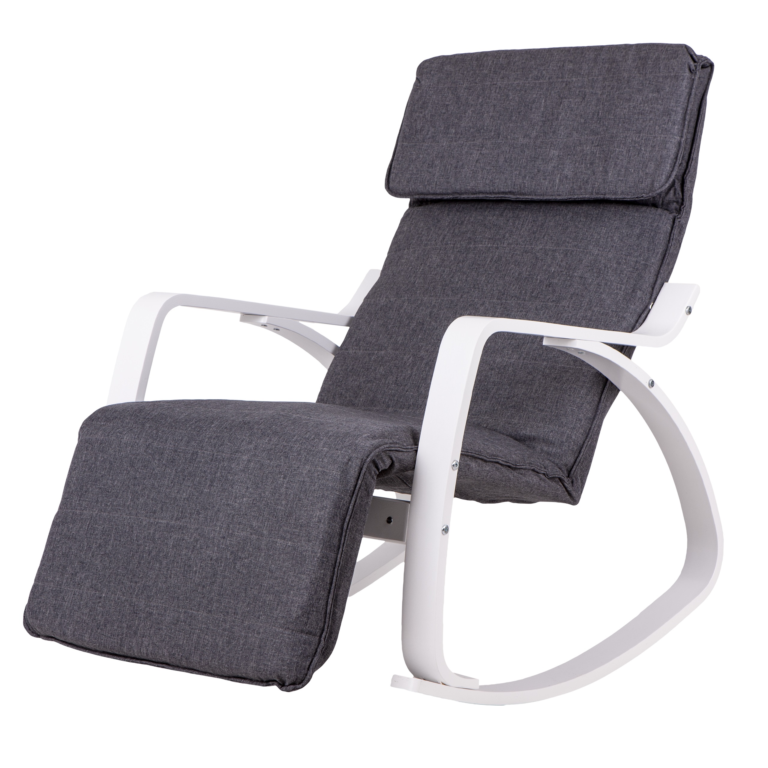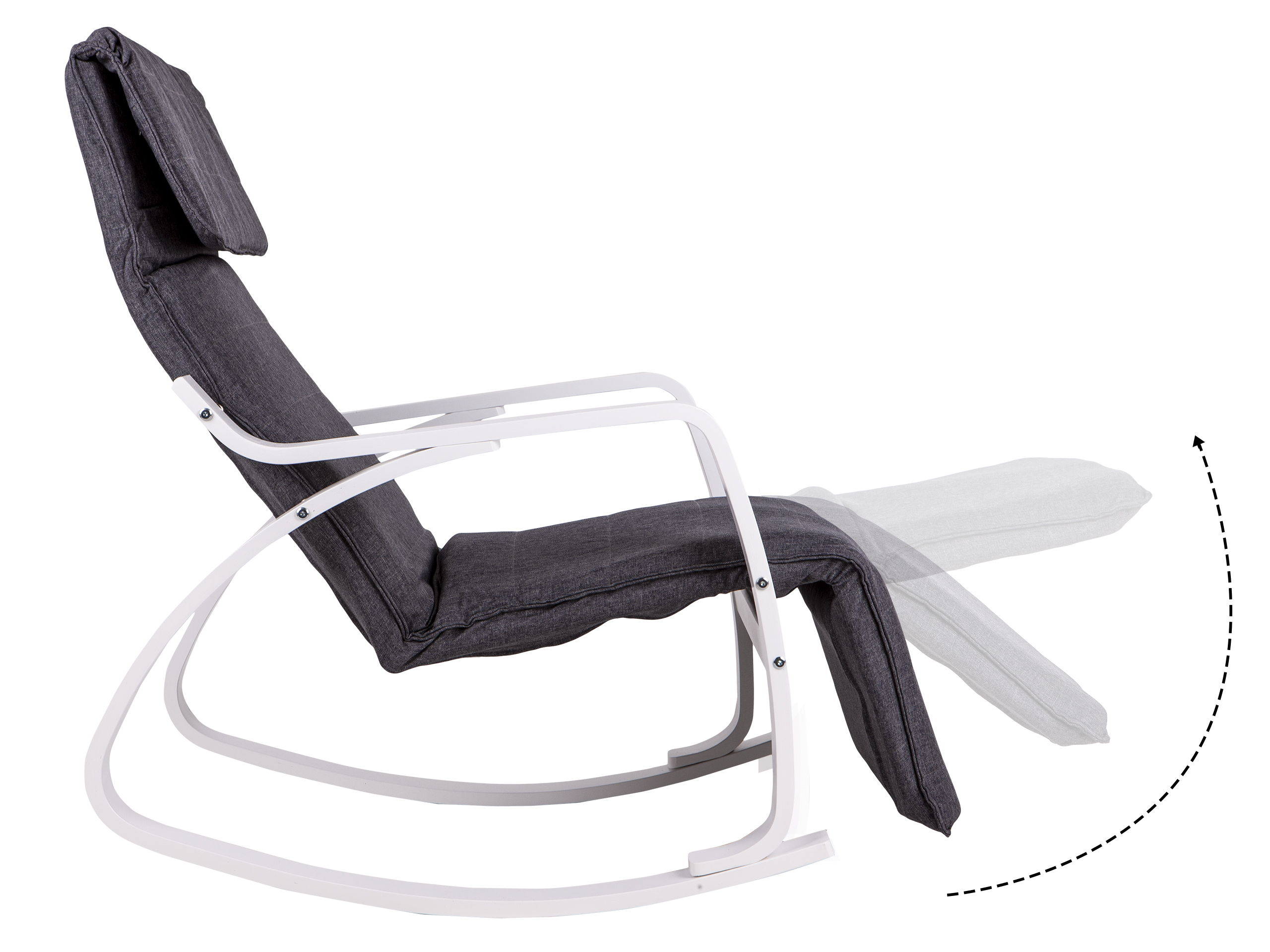 Fotel bujany ModernHomez pewnością ułatwi regeneracje sił, możliwość delikatnego bujania ukoi nerwy, wygodne oparcie da podporę zmęczonemu kręgosłupowi a podwójny zagłówek pozwoli odpocząć głowie.