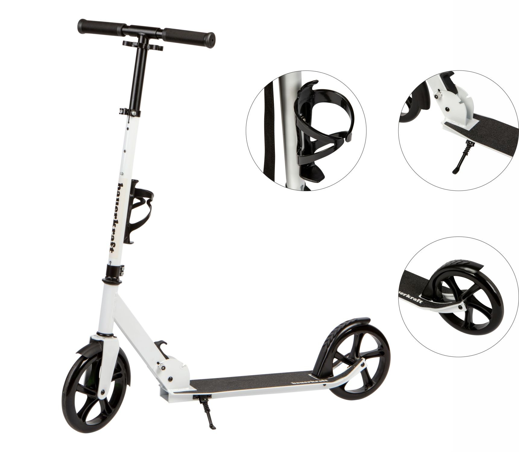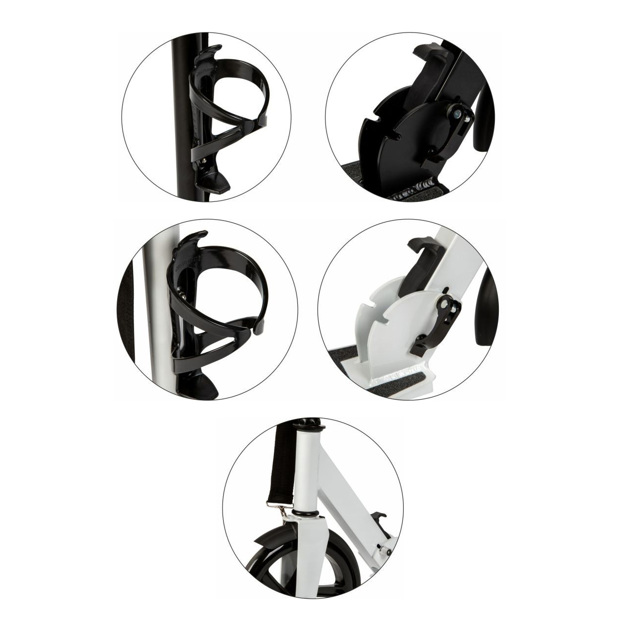 • Praktyczny system składania kierownicy – umożliwia szybkie złożenie hulajnogi do kompaktowych rozmiarów. Stabilne zawiasy i zabezpieczenia zwiększają bezpieczeństwo.