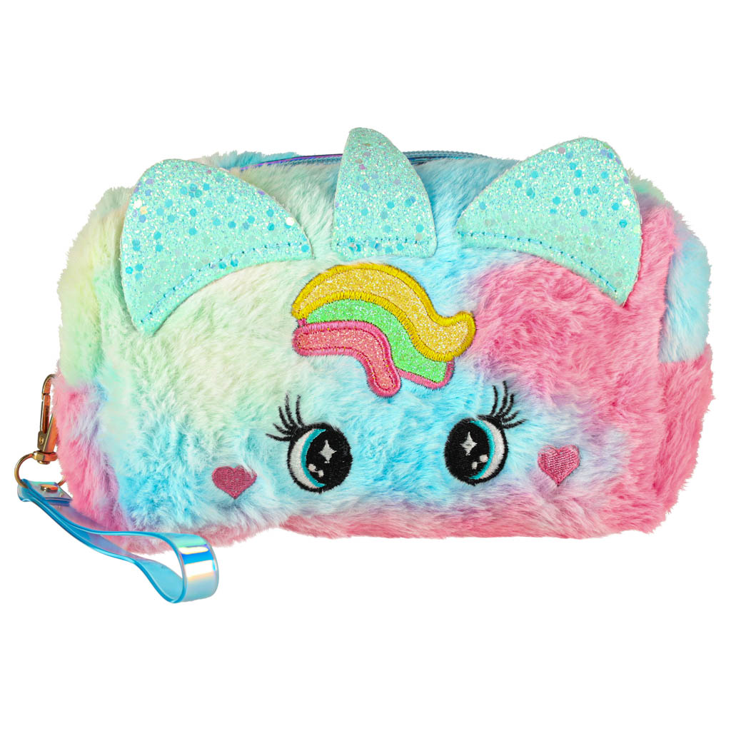 - tęczowa kosmetyczka z oczami i uszami jednorożca