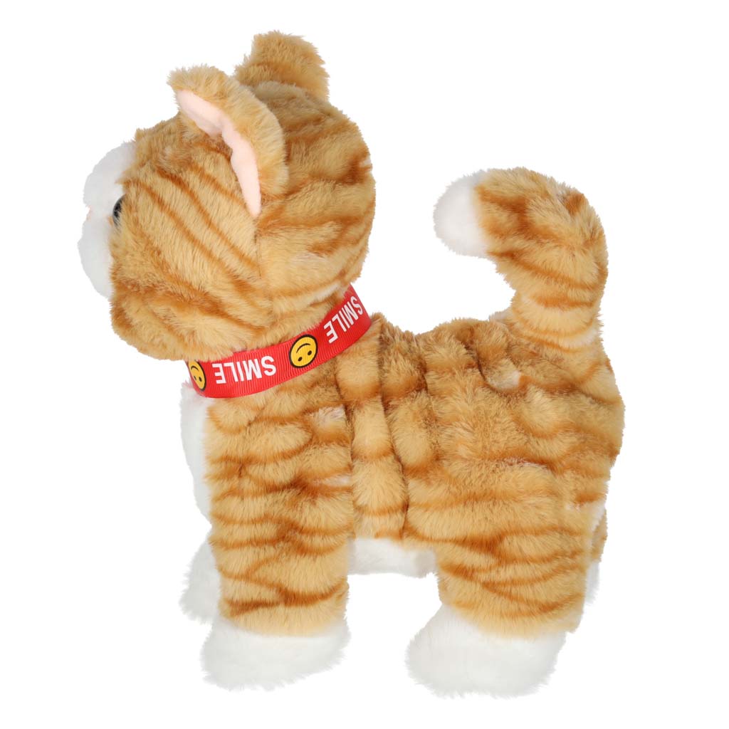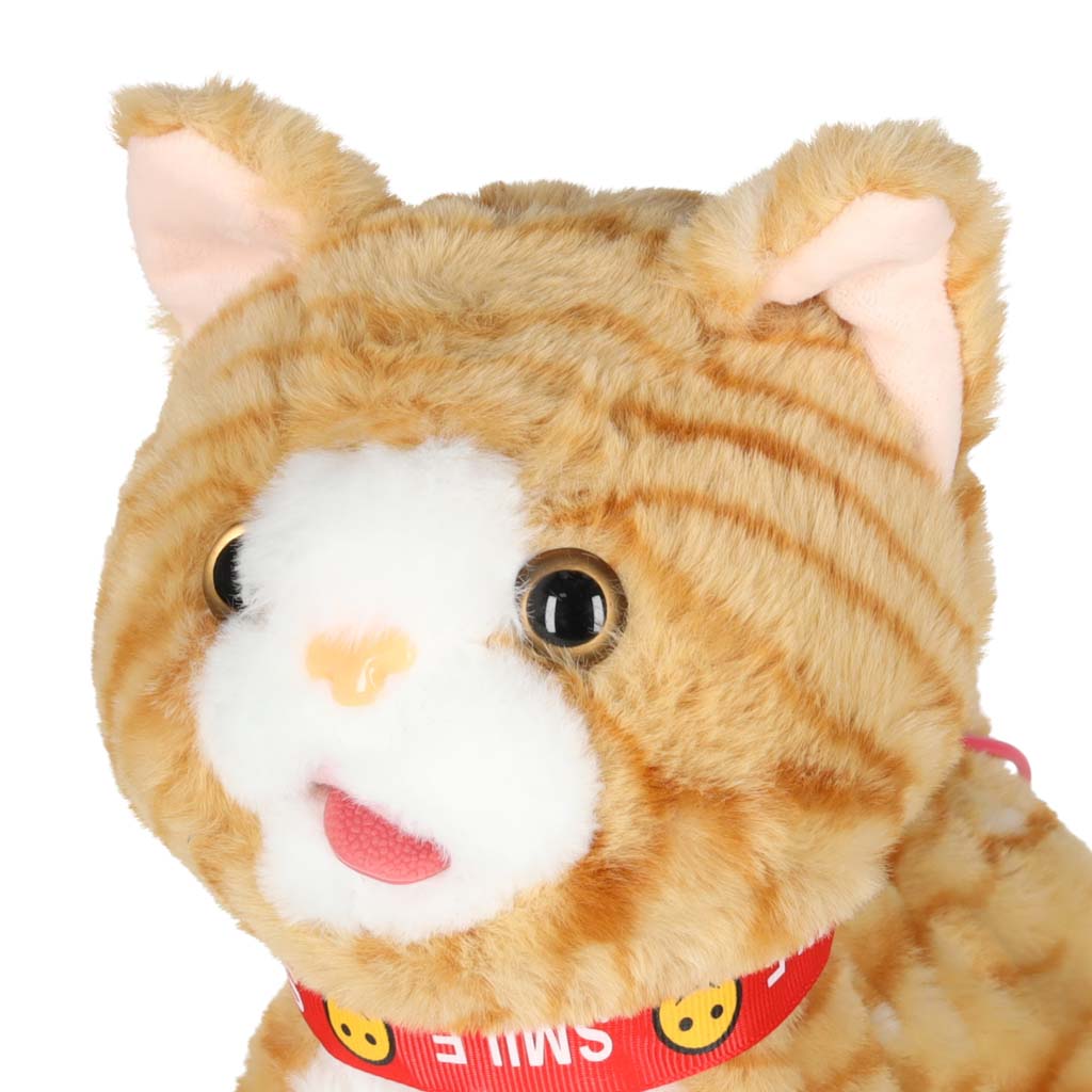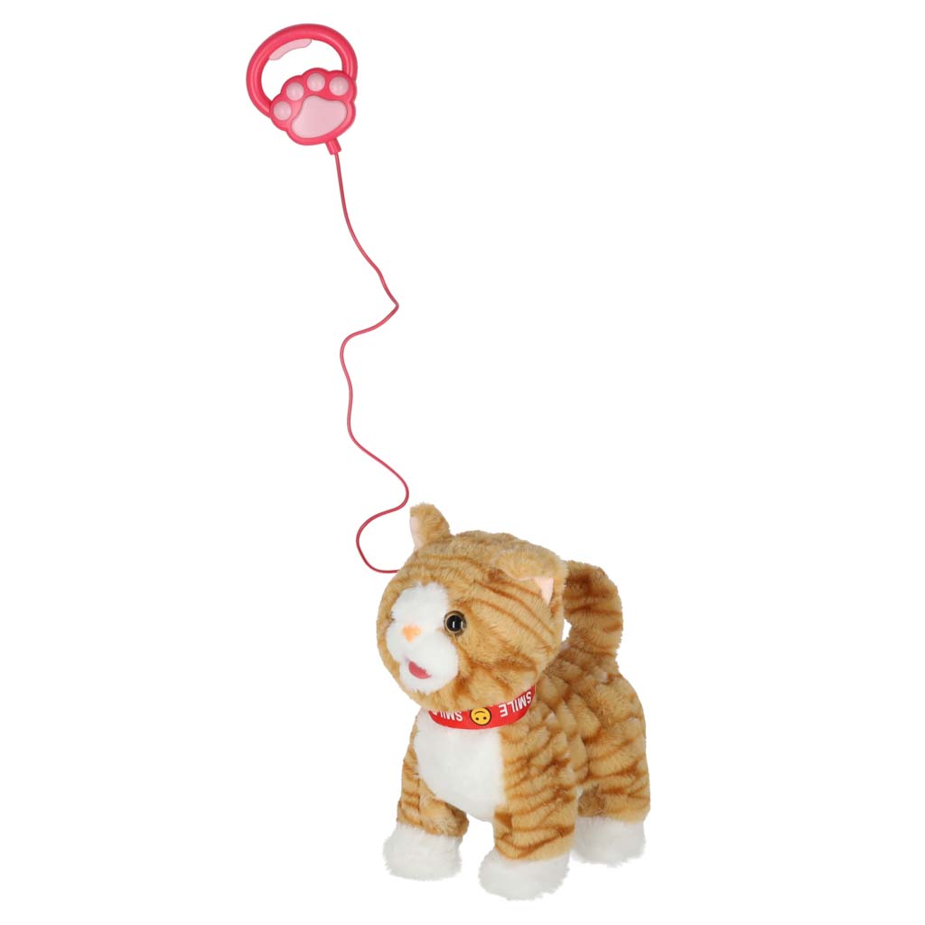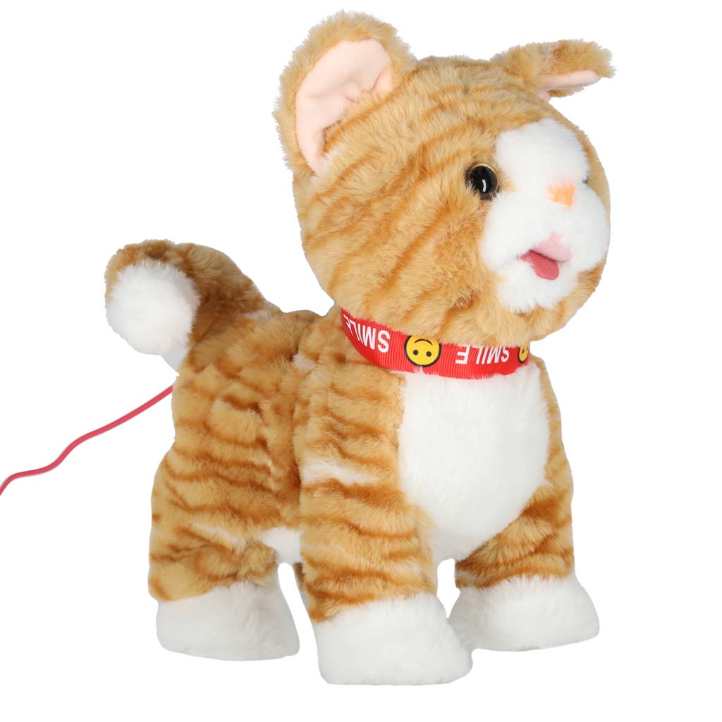 kotek na smyczy będzie pluszowym towarzyszem zabaw Twojego dziecka. Działa na