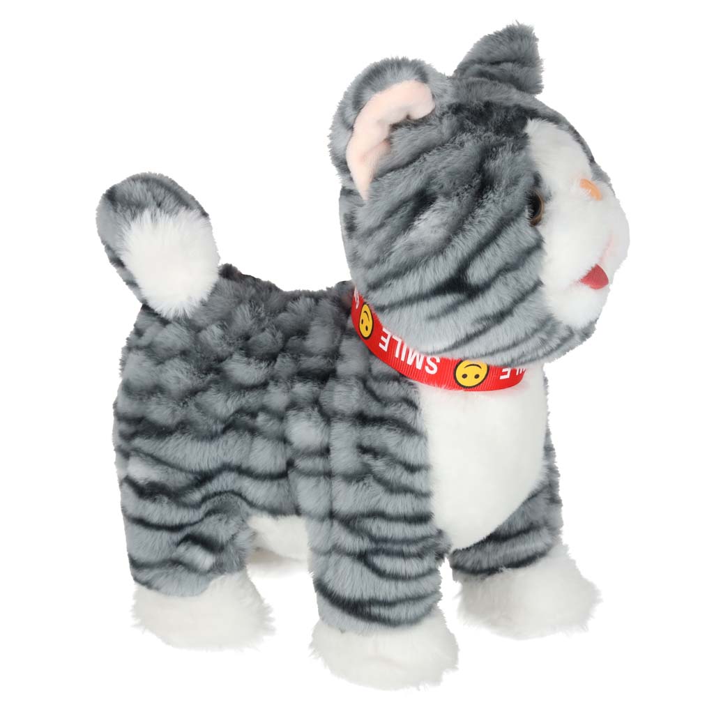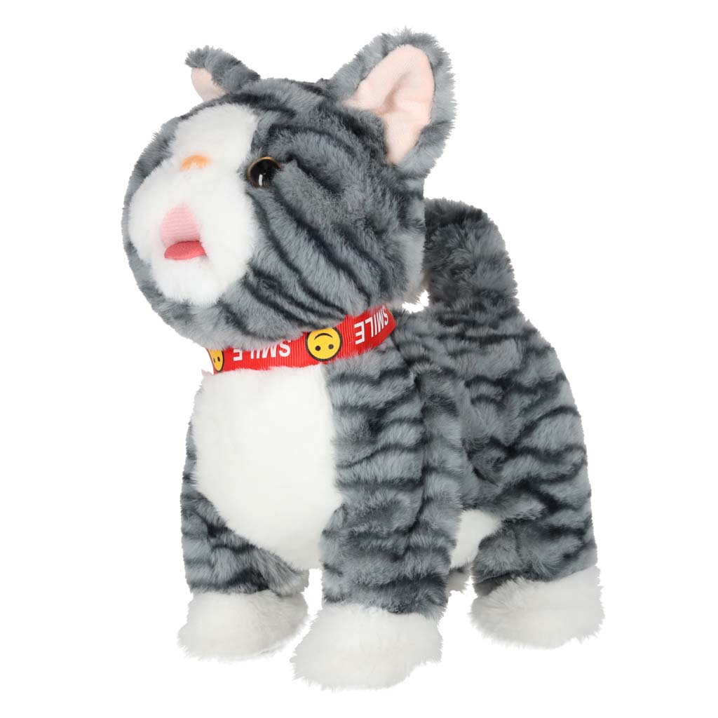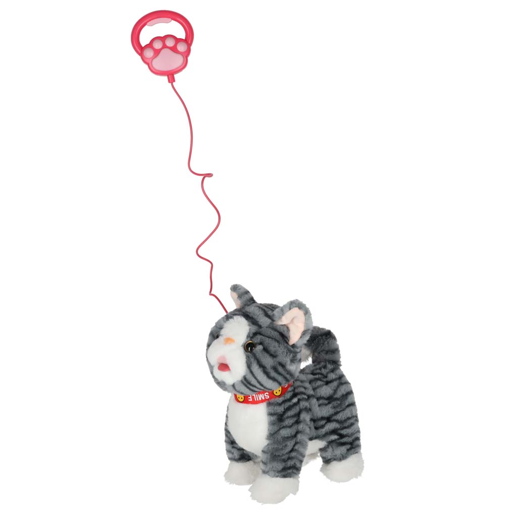 Kotek interaktywny na smyczy miauczy chodzi rusza ogonem szary