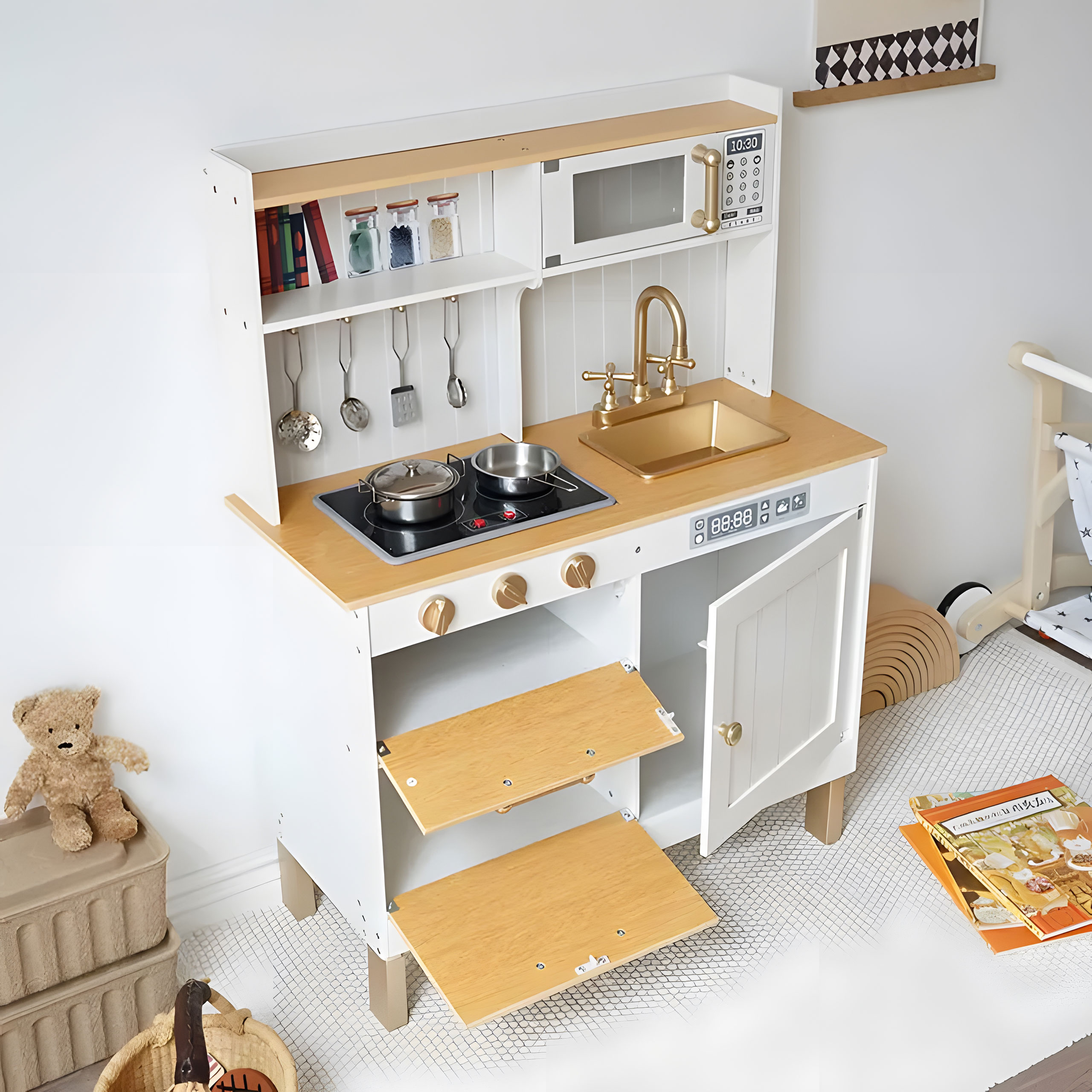 Kuchnia dla dzieci z dźwiękami i LED drewniana duża otwierane szafki 7 akcesoriów ECOTOYS