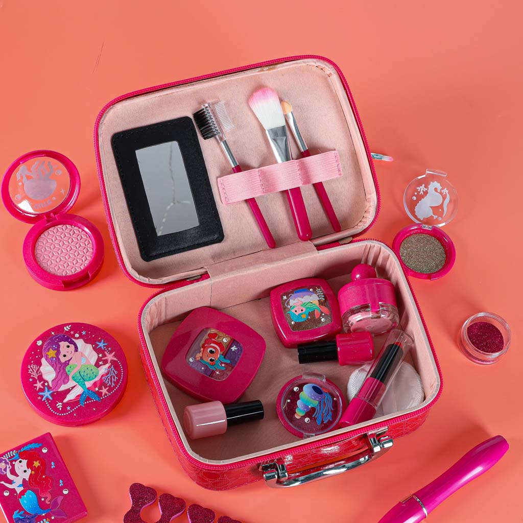 Zestaw do makijażu dla dzieci w uroczym, różowym kuferku to wymarzony upominek dla każdej dziewczynki. Dzięki wygodnemu uchwytowi kuferek można zabrać wszędzie – na wakacje, do przedszkola czy na spotkanie z przyjaciółkami. To idealny prezent, który łączy rozwijającą zabawę i bezpieczeństwo.
