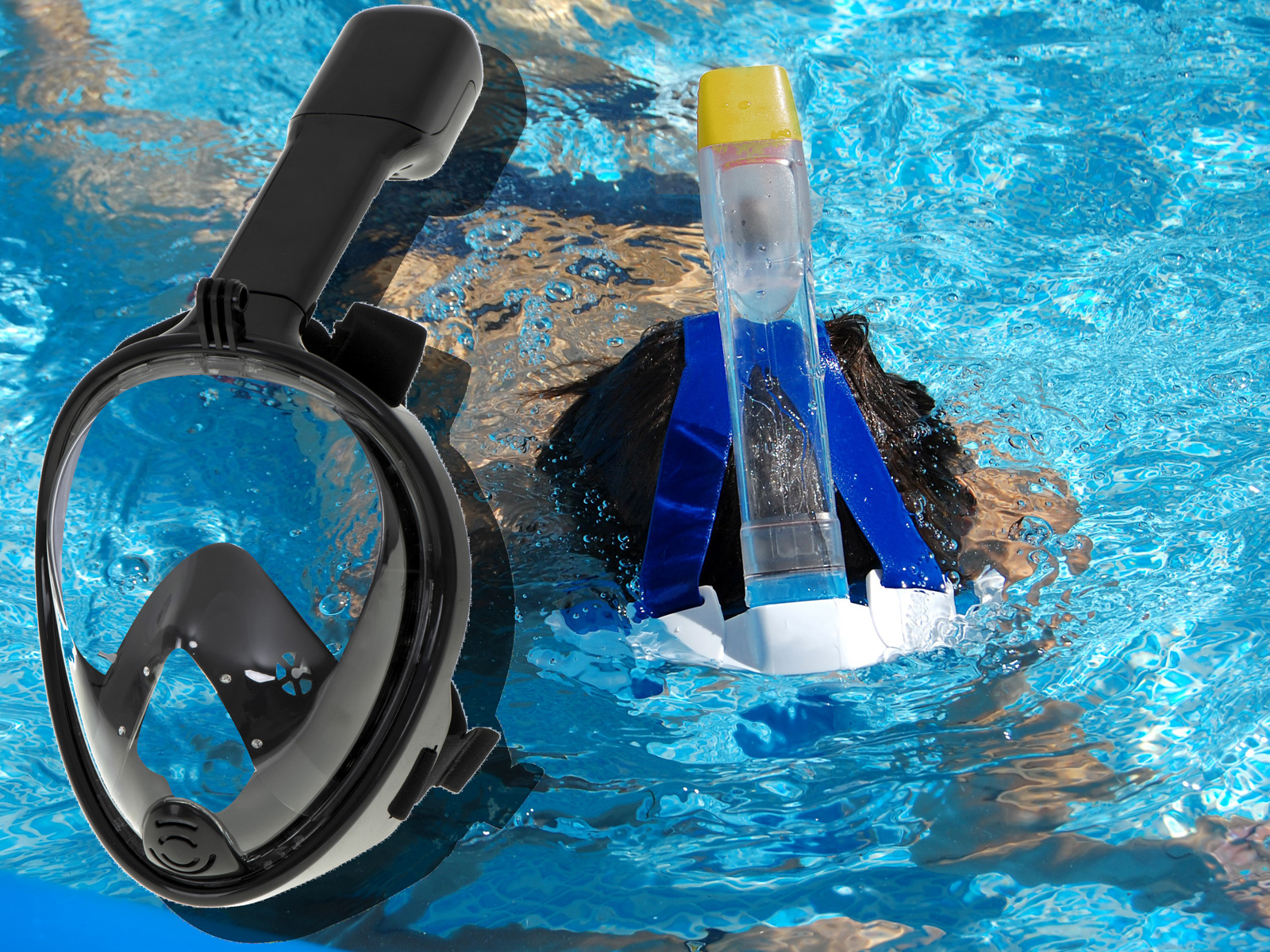 Specjalnie zaprojektowana maska przeznaczona jest do sportu jak i do użycia rekreacyjnego. Wygodna dla osób które lubią pływania z rurką w ustach, ta umiejscowiona jest nad głową.