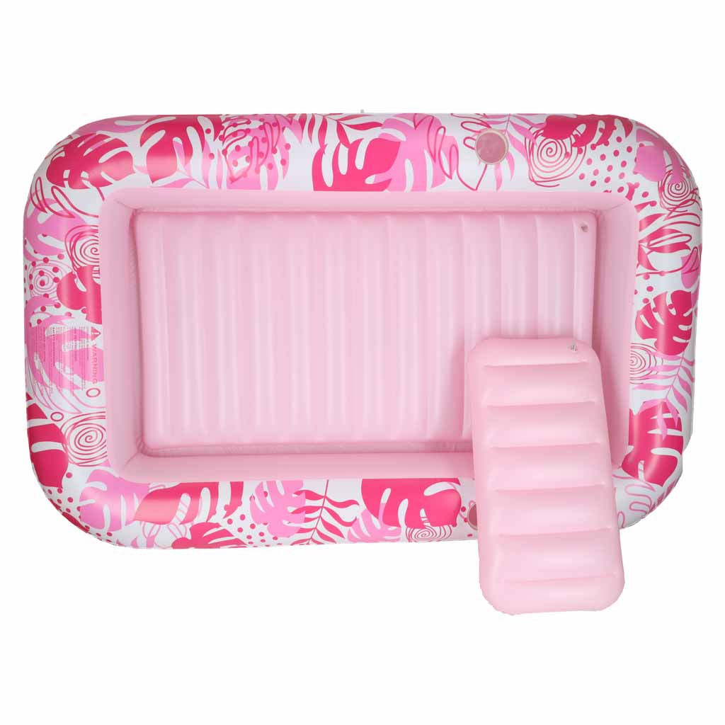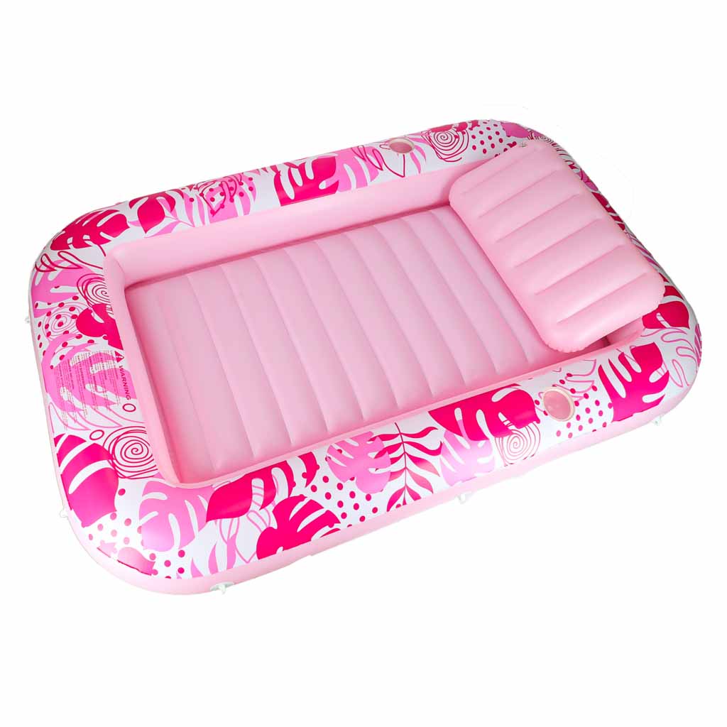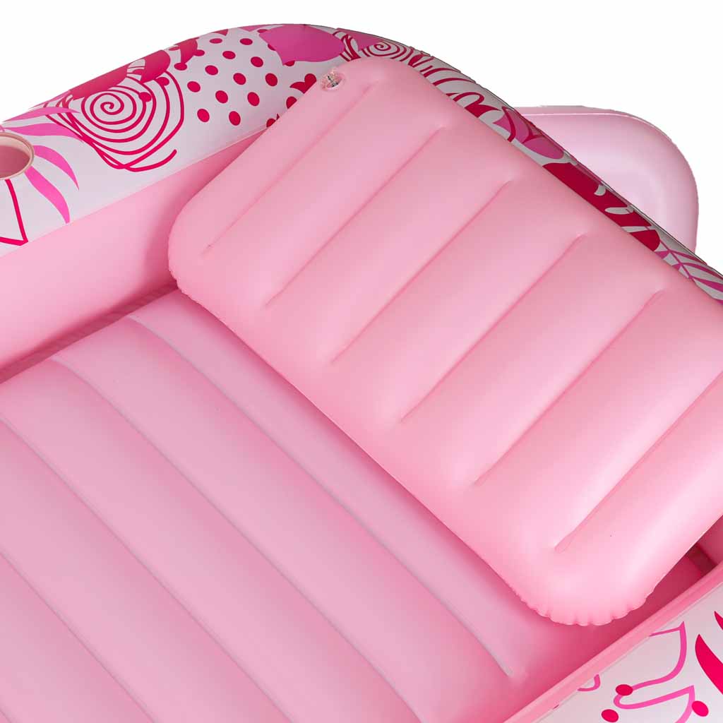Materac dmuchany do pływania, leżak do opalania z poduszką różowy