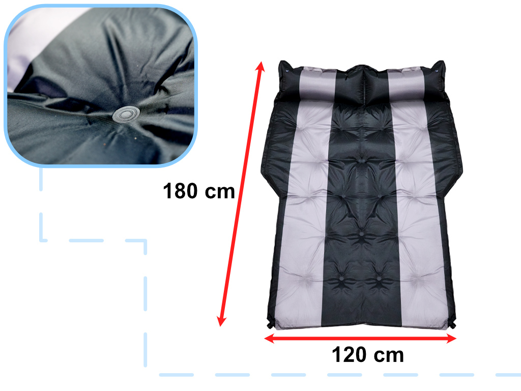 Wymiary zostały dopasowane tak, aby materac zmieścił się w większości pojazdów, w których istnieje możliwość złożenia tylnej kanapy! 180 cm długości zapewni wygodę, a 120 cm szerokości pozwoli komfortowo położyć się dwóm osobom!