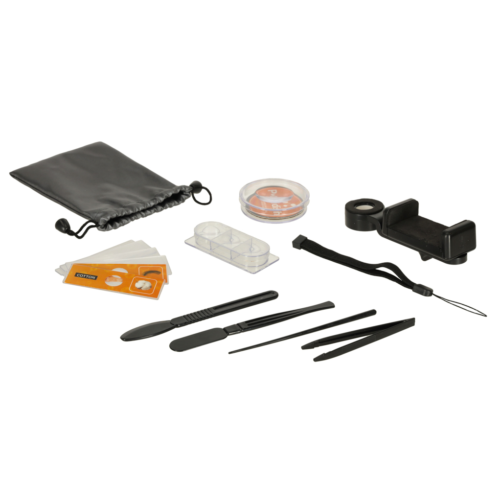 Uchwyt na telefon pozwala na obserwowanie próbek na ekranie urządzenia oraz robienie zdjęć,