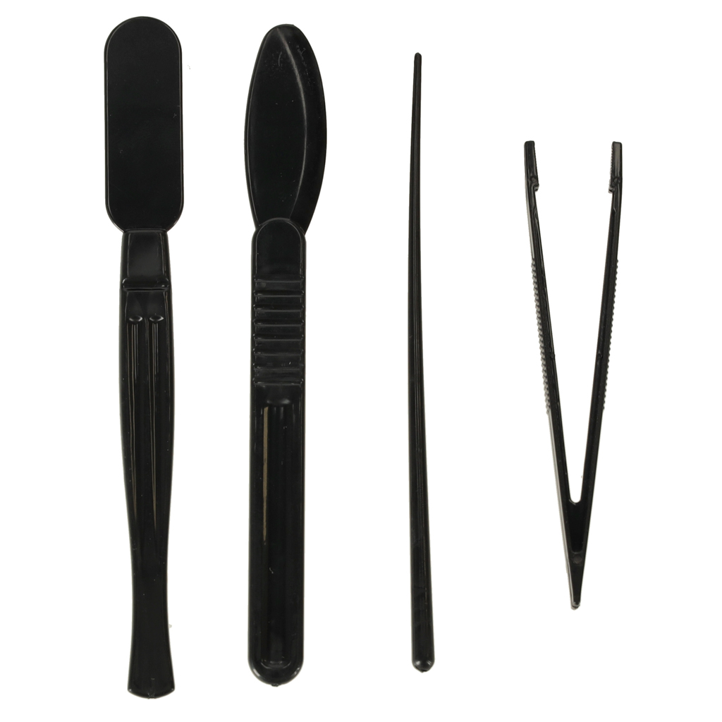 preparatów, takie jak pęseta i plastikowy skalpel.