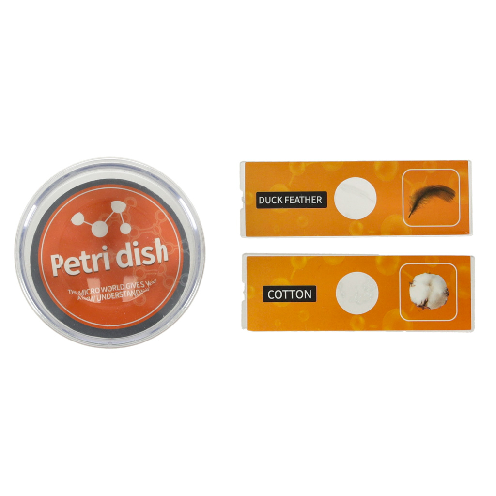 Zestaw zawiera dwa gotowe szkiełka z próbkami (pióro kaczki i włókna bawełny), co pozwala na rozpoczęcie nauki od razu po rozpakowaniu. A cztery puste szkiełka umożliwiają przygotowanie własnych preparatów, co jeszcze bardziej angażuje dziecko i rozwija jego zdolności manualne. Do zestawu dołączono podstawowe narzędzia, które ułatwiają przygotowywanie własnych