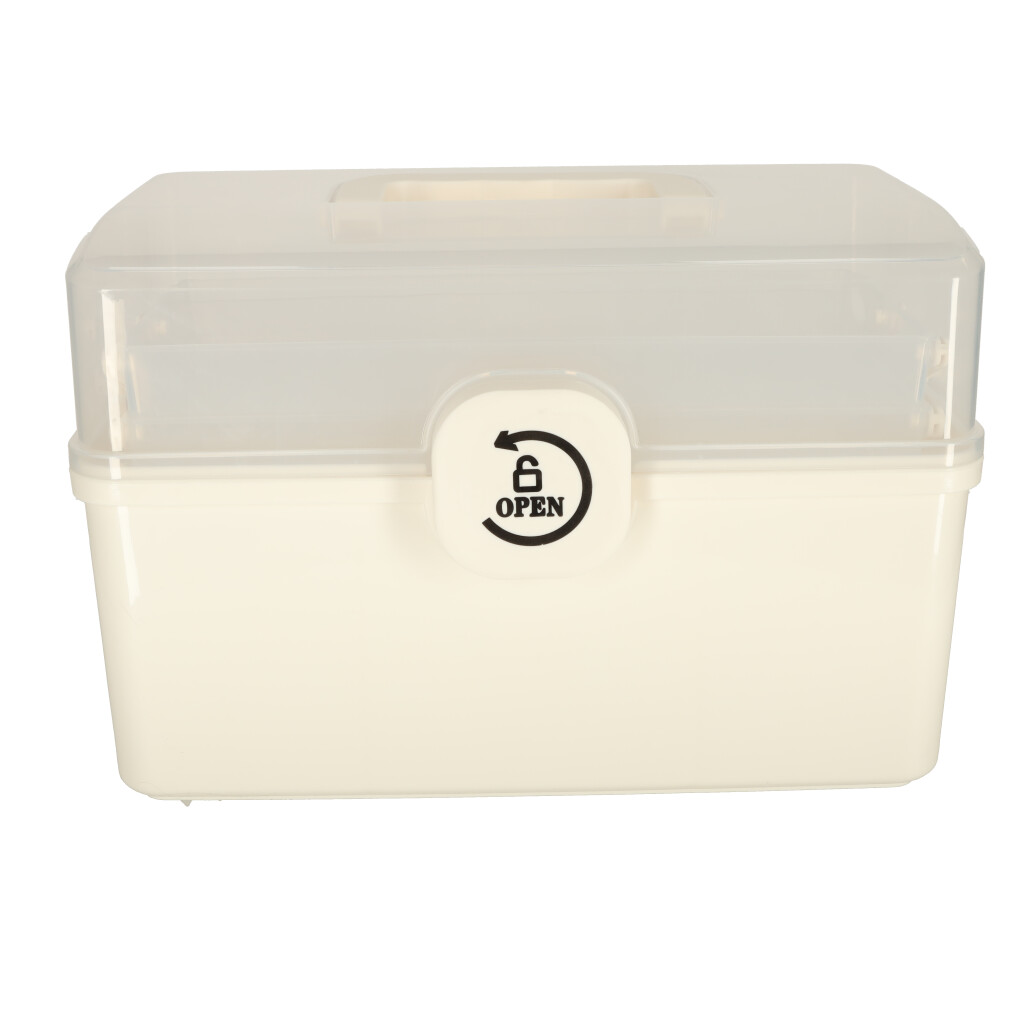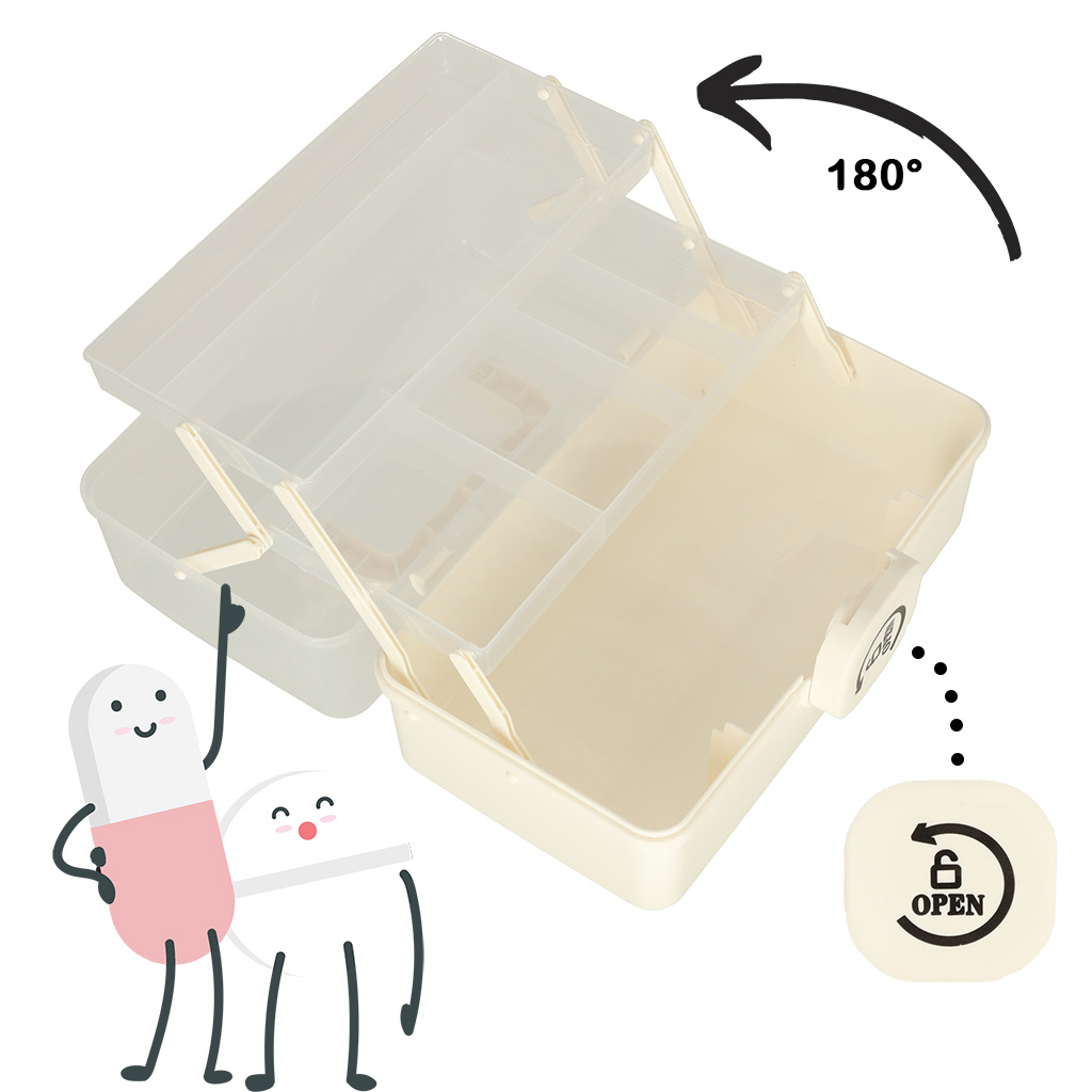 Przezroczyste wieczko ułatwia dostrzeżenie poszukiwanego medykamentu jeszcze bez otwierania domowej apteczki.