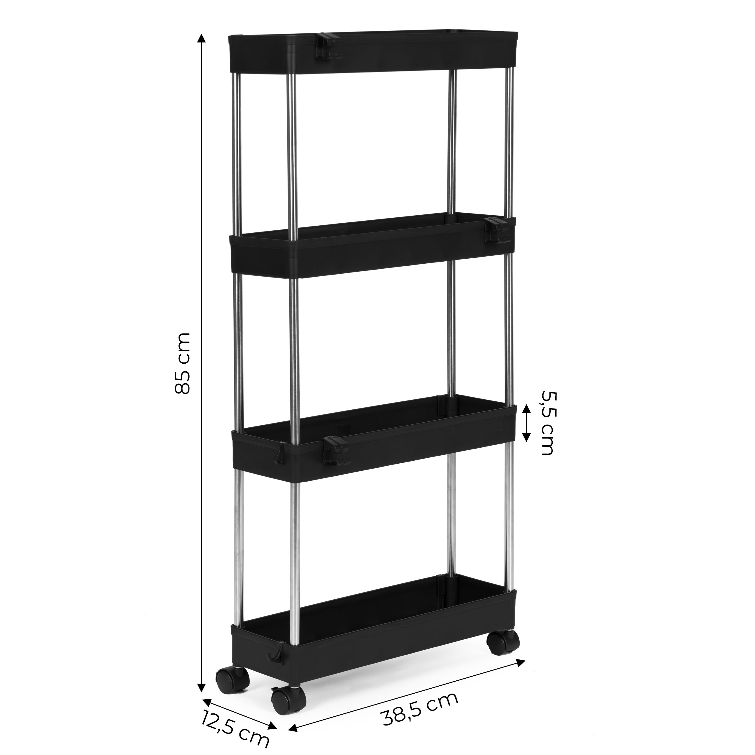 Plastikowy regał łazienkowy z 4 półkami kółka czarny ModernHome