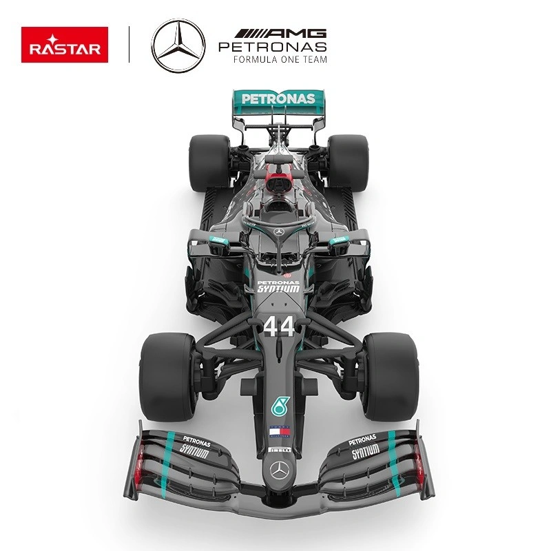 Realistyczna skala 1:18 i starannie odwzorowana konstrukcja inspirowana bolidem Mercedes-AMG F1 W11 EQ Performance. Dbałość o detale, widoczne logo sponsorów i aerodynamiczna sylwetka sprawiają, że model prezentuje się jak prawdziwy mistrzowski bolid – zarówno podczas jazdy, jak i na półce kolekcjonera.