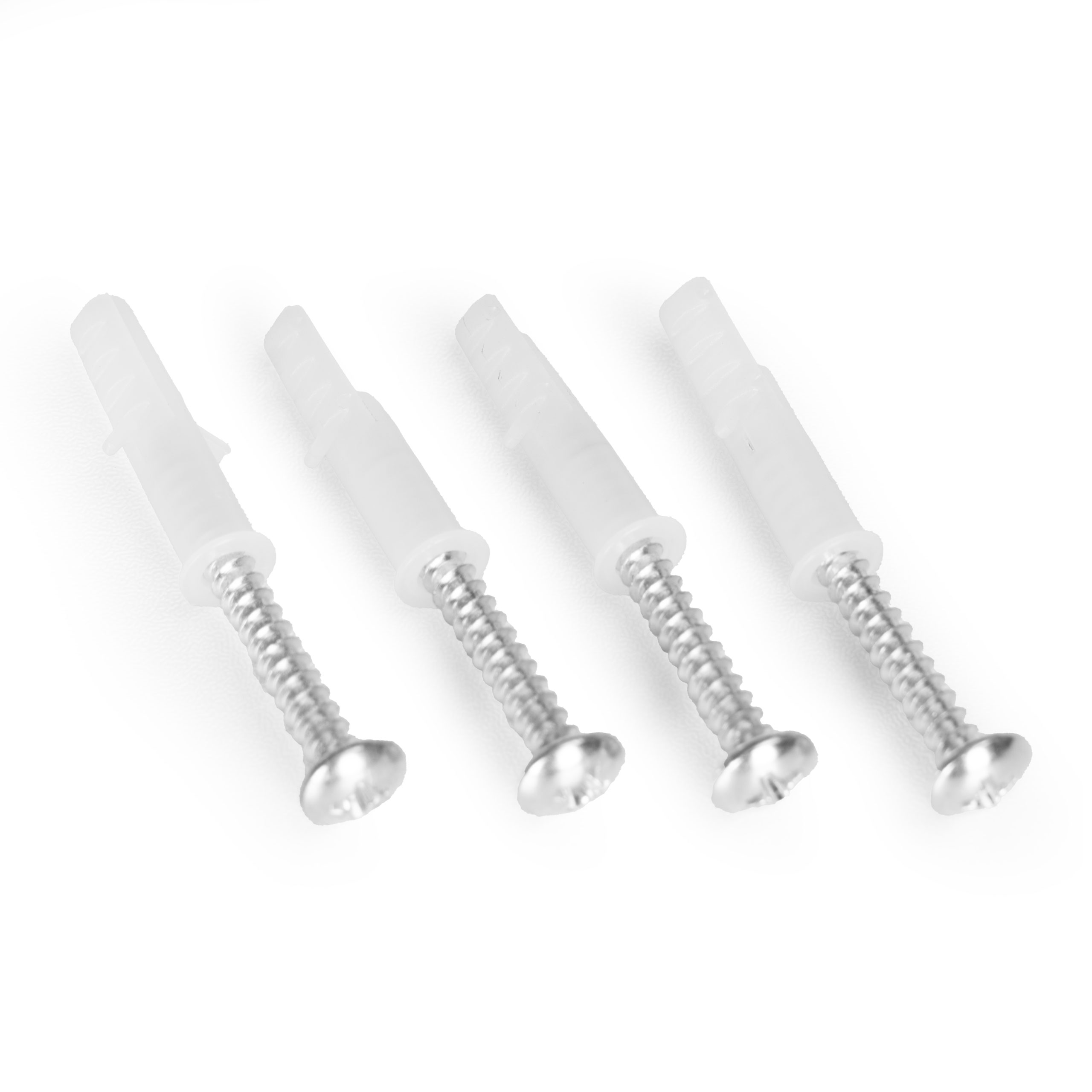 W zestawie montażowym znajdują się wszystkie elementy niezbędne do solidnego oraz wygodnego zamocowania skrzynki: 4 śruby i 4 kołki rozporowe. Komplet ten pozwala na stabilny montaż na ścianie lub ogrodzeniu, zapewniając trwałość mocowania i bezpieczne użytkowanie w codziennych warunkach.