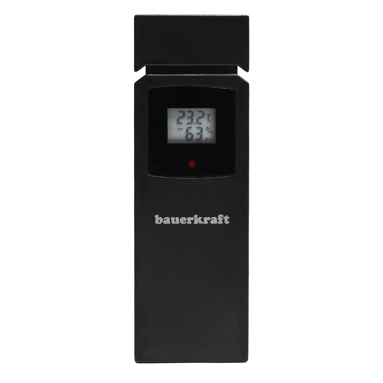 Umieszczony w dowolnym miejscu czujnik zewnętrzny, bezprzewodowo przesyła do naszej stacji aktualne informacje odnośnie temperatury oraz wilgotności powietrza. Jego zasięg to 30 m – bez problemu sprawdzi się w dużym domu. Czujnik posiada również wyświetlacz, na którym możemy zobaczyć temperaturę oraz wilgotność powietrza.