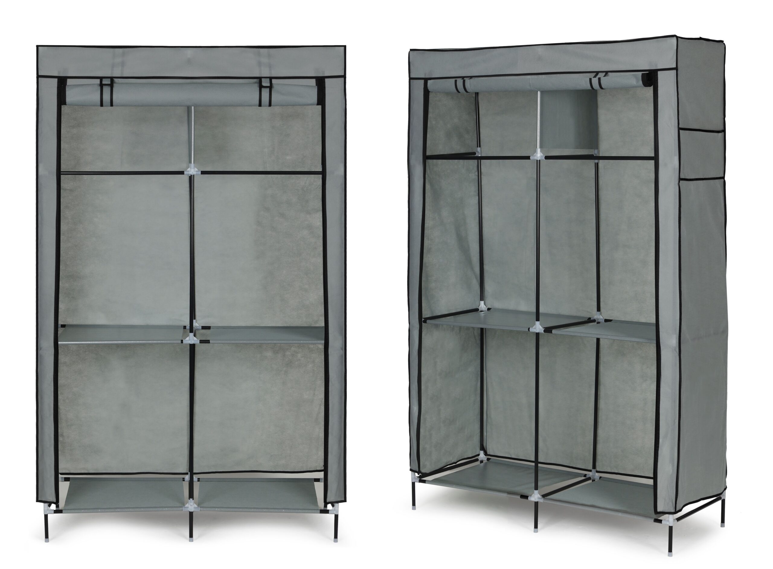 - W górnej części znajdują się specjalne materiałowe opaski, które pozwalają w łatwy sposób zamocować zwinięty materiał – zasłonę. Dzięki temu możesz korzystać niej mając łatwy, bezpośredni dostęp do wszystkich półek. Materiał, który tworzy ściany szafy doskonale chroni odzież przed kurzem i wilgociom.