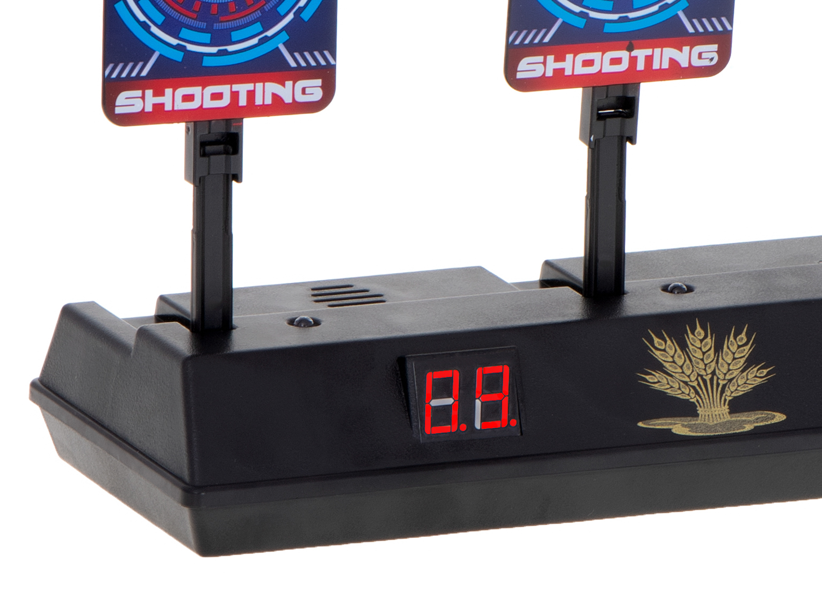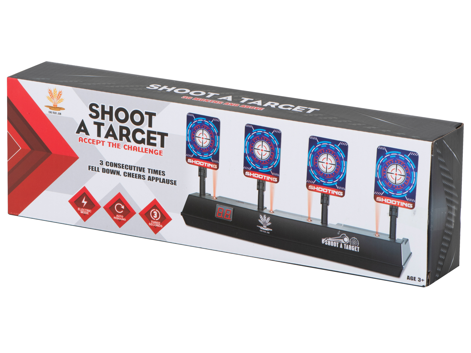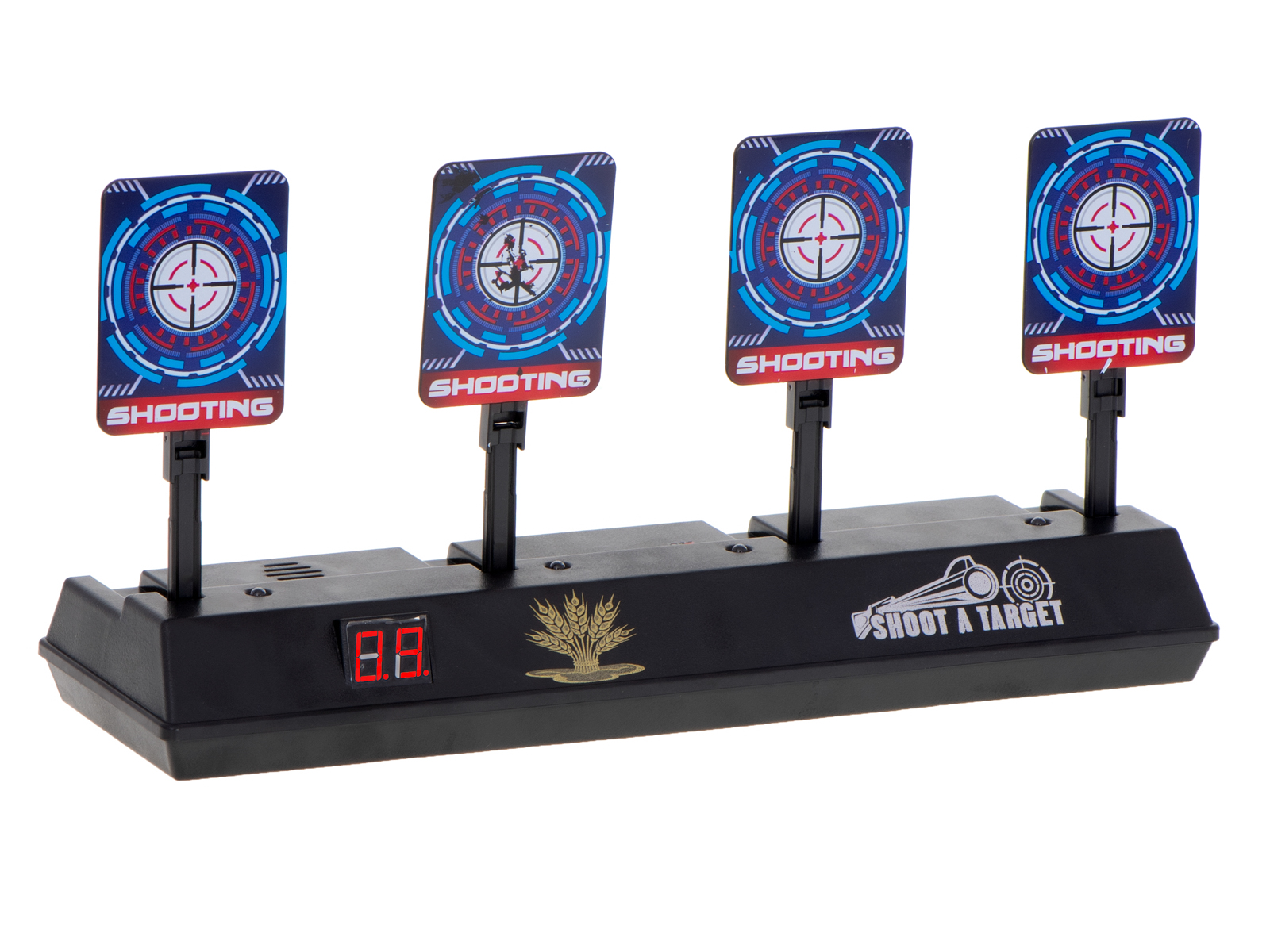 W tarczę można strzelać z pistoletów na piankowe strzałki. Posiada ona efekty świetlne i dźwiękowe uatrakcyjniające zabawę. Po trafieniu możemy usłyszeć dźwięk tłuczonego szkła lub oklaski. Dodatkowo na tarczy został umieszczony dwucyfrowy licznik punktów. Każdy cel po trafieniu kładzie się do tyłu. Po zestrzeleniu czterech tarcz otrzymujemy 1 punkt, a następnie wszystkie podnoszą się automatycznie do góry.
