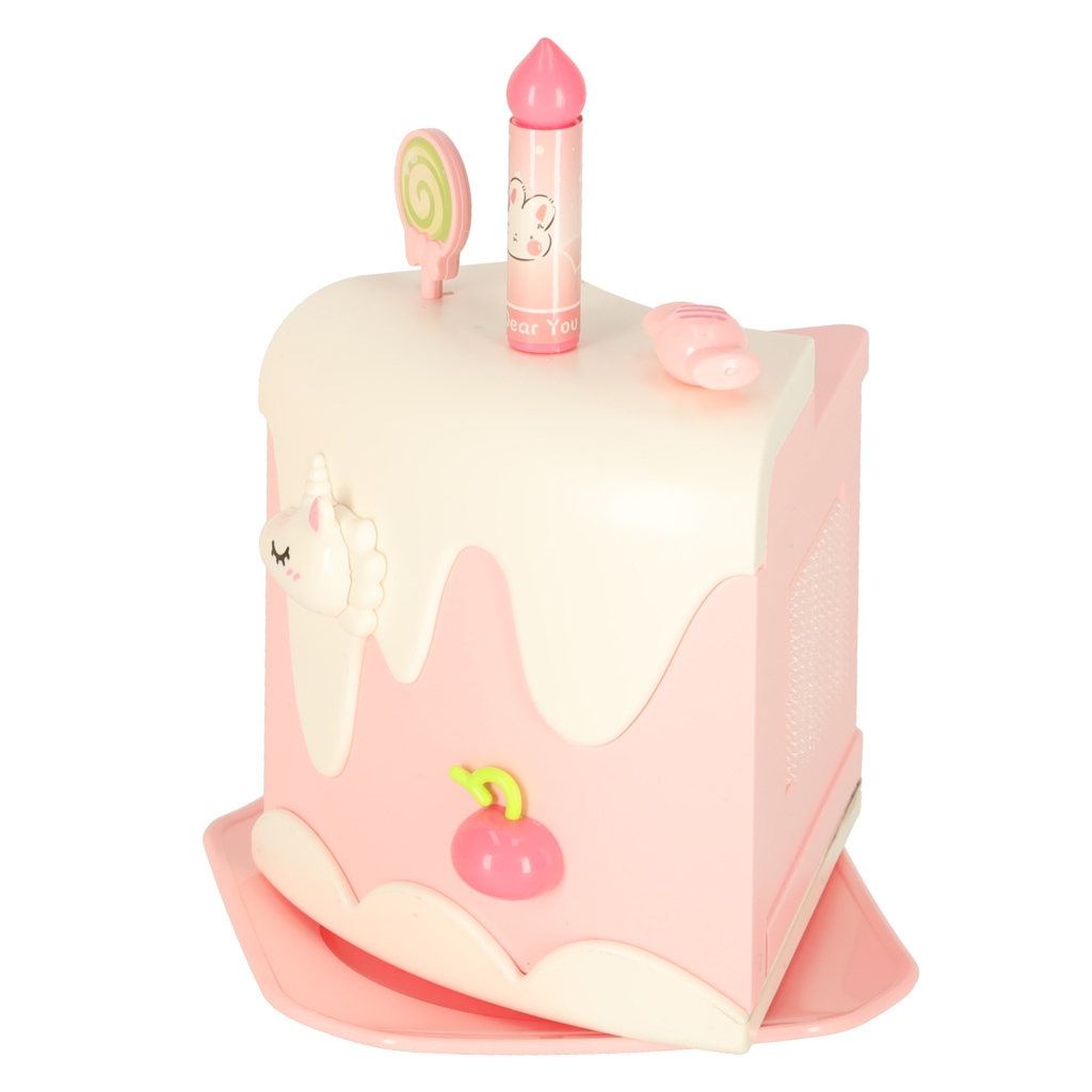 naciśnięciu figurki misia lub jednorożca tort obraca się, grając specjalną