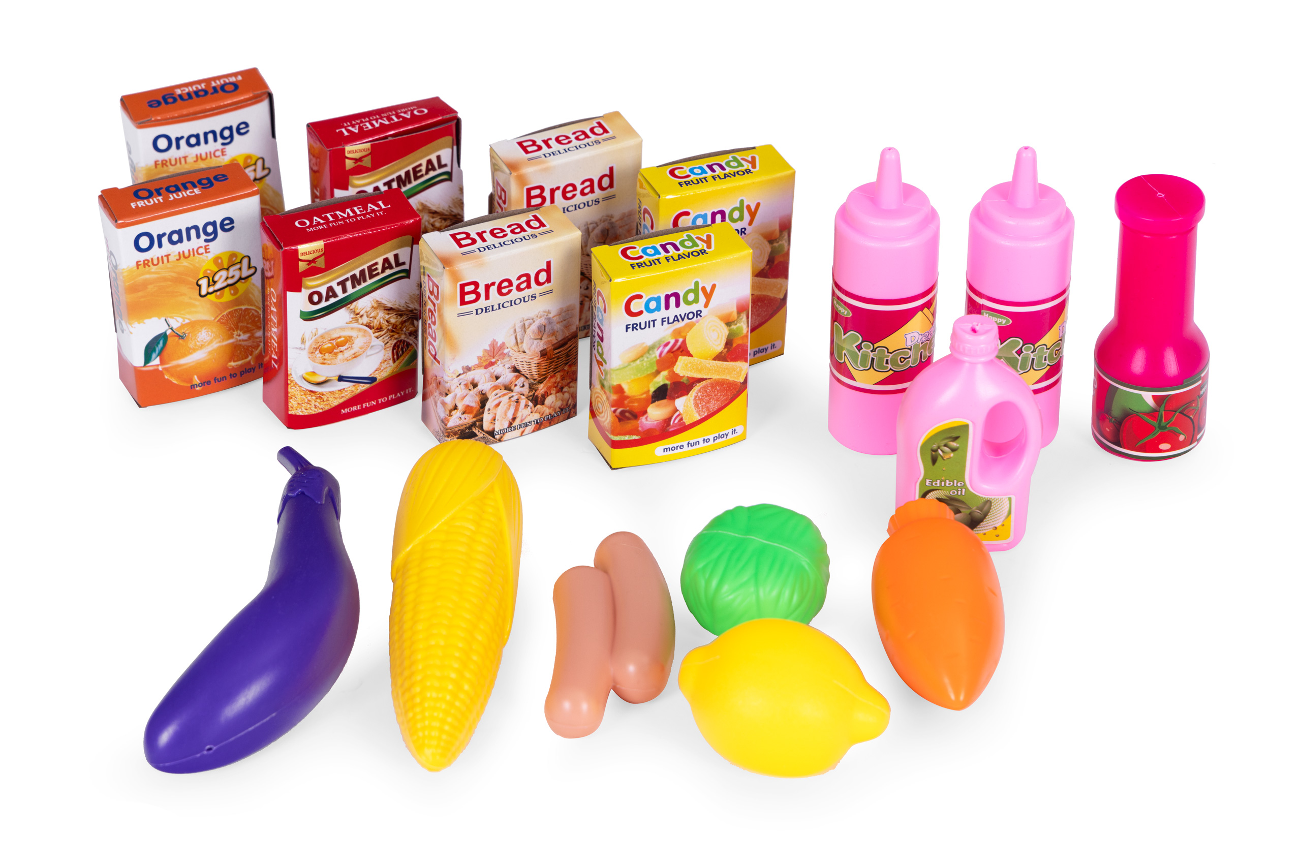 Zestaw obejmuje autentycznie wyglądający wózek zakupowy z różnorodnymi produktami spożywczymi, który pomaga rozwijać zdolności motoryczne i organizacyjne. Maluchy mogą cieszyć się wieloma imitacjami prawdziwych produktów, od warzyw po słodycze, co sprawia, że nauka zakupów staje się fascynującym doświadczeniem.