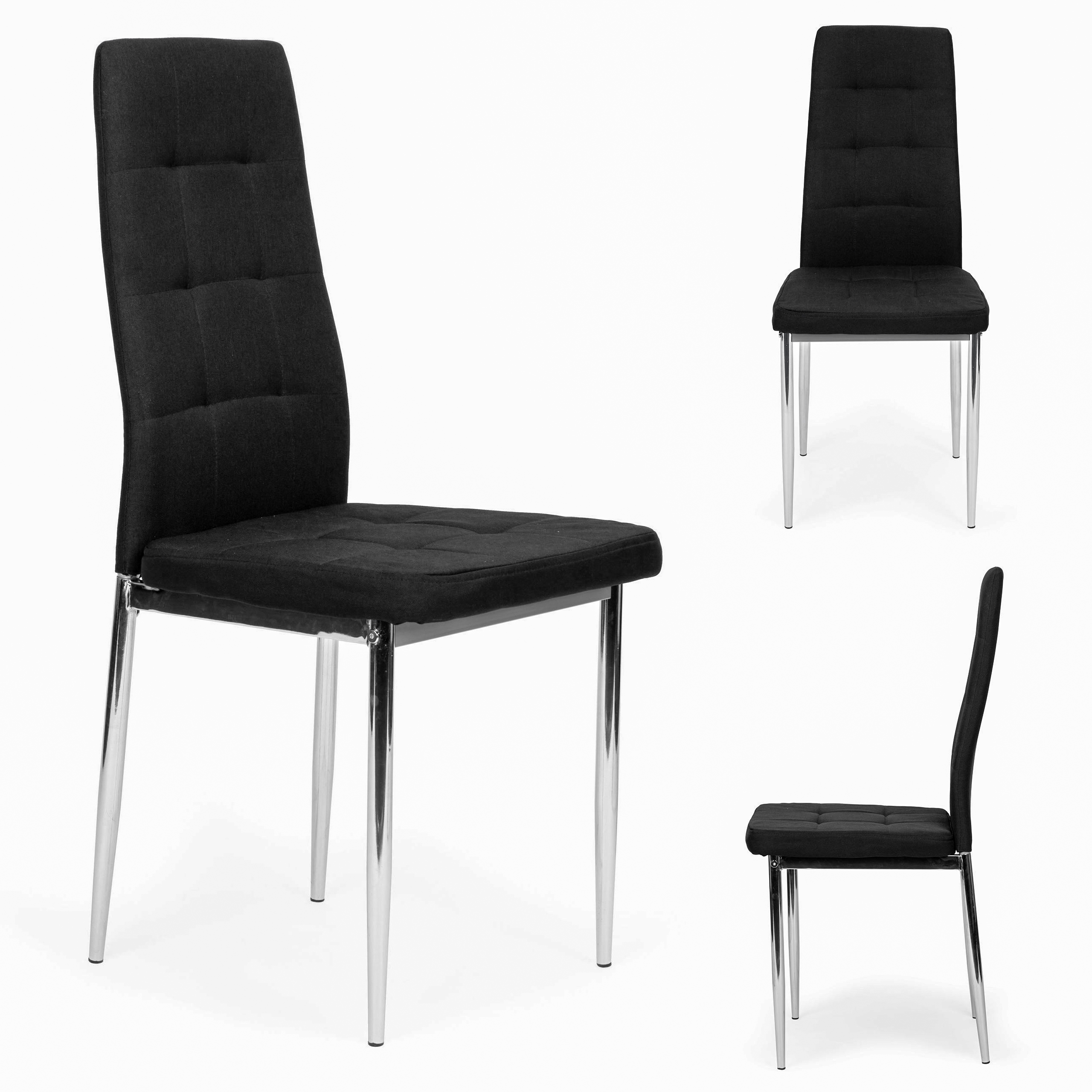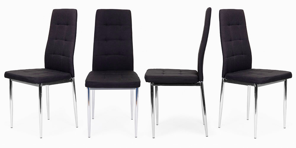 Zestaw 4 krzeseł do salonu jadalni proste pikowane krzesło chromowane nogi czarne