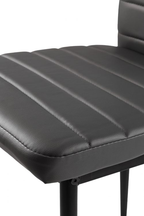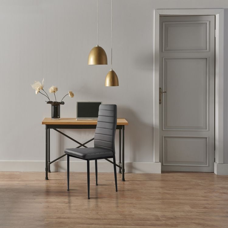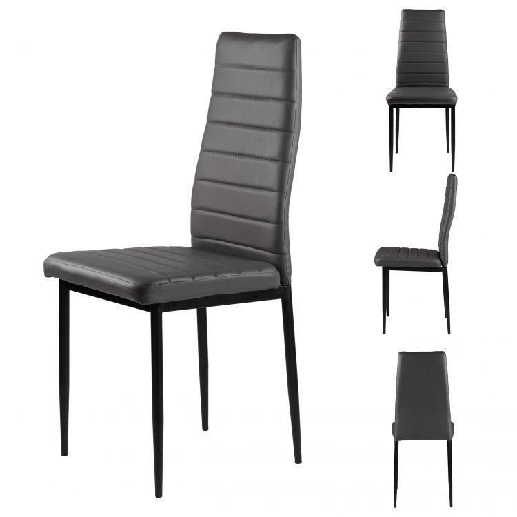 Krzesła będą świetnie współgrać z rodzinnym stołem w Twojej jadalni i kuchni. Szare poszycie wykonane z miękkiej ekoskóry i czarne, proste nogi tworzą ciekawe połączenie, które sprawia, że krzesła będą świetnie wyglądać i wpasują się w każdy rodzaj wnętrza, dodając mu wyjątkowego charakteru.