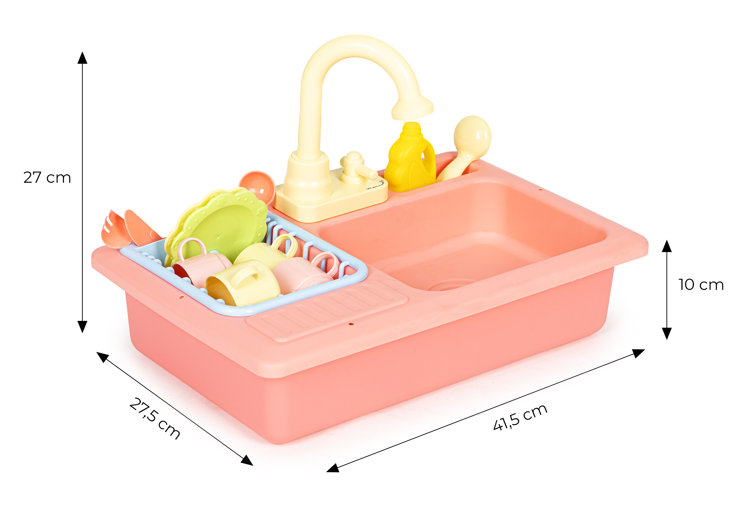 Łączenie zabawy z rozwojem ich zdolności, to najlepsza forma nauki dzięki, której zabawa staje się nie tylko wciągająca ale również korzystnie wpływa na zdolności manualne, rozwija wyobraźnię i uczy właściwych nawyków. Zadbaj o rozwój swojego dziecka i wybieraj zabawki, które wpłyną na wiedzę i rozwój Twojej pociechy. Przed Tobą jedna z takich zabawek – zlew z kranem, z którego leci woda. Dzięki tej zabawce dzieci mogą spróbować swoich sił podczas zmywania, będą ćwiczyć koordynację ręka-oko, poznają zasady zmywania, a przede wszystkim będą miały wielką frajdę z samej zabawy wodą.